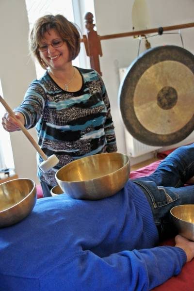 Bei der Klangmassage werden Klangschalen in einer bestimmten Abfolge auf den Körper gelegt und angeschlagen. Ihre sanfte Wirkungsweise macht die Klangmassage zu einer äußerst effektiven Methode. In der Regel wird die Klangmassage schnell akzeptiert und als sehr wohltuend empfunden. Vorteilhaft ist auch, dass die Klangmassage-Kunden ihre Kleidung anbehalten können.